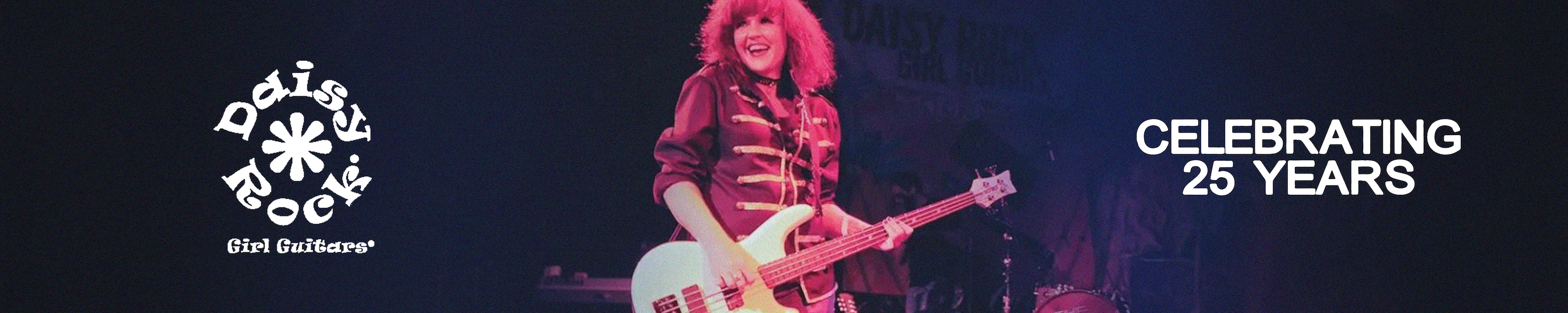 Twenty five years after Tish’s daughter drew the daisy that started it all, that same daughter stepped up to help her run the company. Daisy Rock was an idea that began as a love letter from mother to daughter – it only makes sense that it’s now become a family business. As a company that has always been about breaking the gender barrier in music, Daisy Rock looks forward to continuing that mission by adding some sparkle for anyone seeking it.